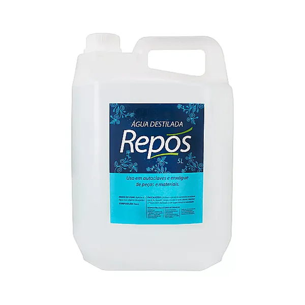 A Água Destilada 5 Litros Repos apropriada para uso em autoclaves, instrumentos de laboratórios.